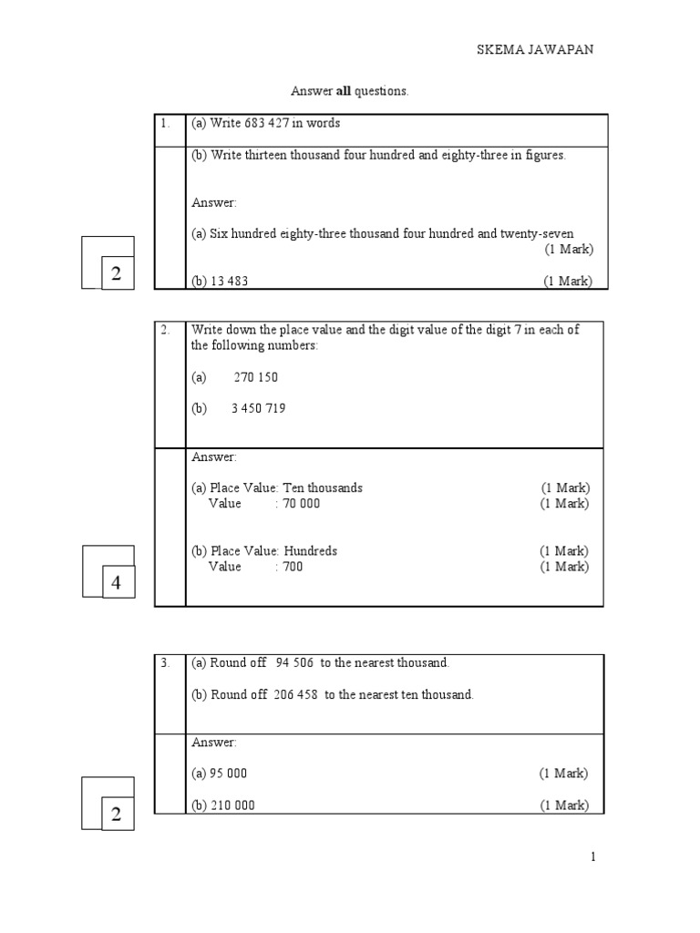 Soalan Peperiksaan Matematik Tingkatan 1 Kertas 2 Skema Jawapan Pdf Mathematical Notation Arithmetic